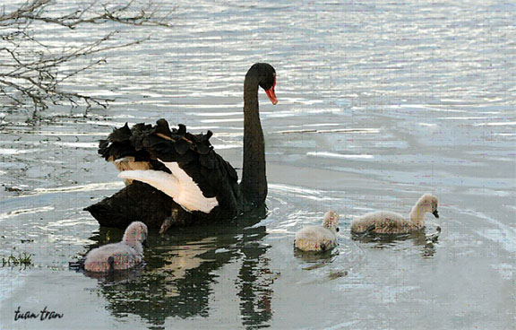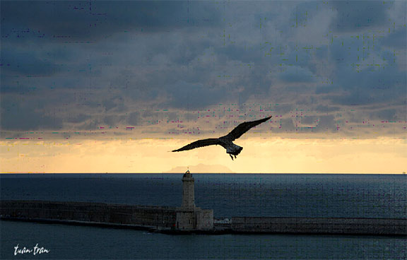 Anh Trần Tuấn, một cựu sĩ quan Hải Quân khóa 19, thêm vào trong dòng máu hồ hải của mình một sở thích nữa là nhiếp ảnh. Nhờ cơ hội viễn du đường biển, anh đã chụp nhiều tấm ảnh hoàng hôn và bình minh trên biển với những cánh chim phiêu bạt trùng khơi. Những tác phẩm này, không phải là hình chụp các loài chim với các ống kính khổng lồ như các chuyên viên về chim chóc. Hình anh chụp cảnh rộng, gợi lên những tâm tình bâng khuâng, những nỗi buồn man mác khi ta ngắm những cánh chim lẻ loi bay trong chiều vàng, chú hải âu lượn cánh trong bầu trời đỏ lửa hoàng hôn xứ Nam Mỹ. Vui như hai cánh chim song phi trên bầu trời buổi sáng Ecuador. Con thiên nga đen thảnh thơi quạt nước với bầy con mới nở tại Tân Tây Lan và một cánh hải âu khác chao liệng trên tầng tháp cổ xứ Địa Trung Hải.